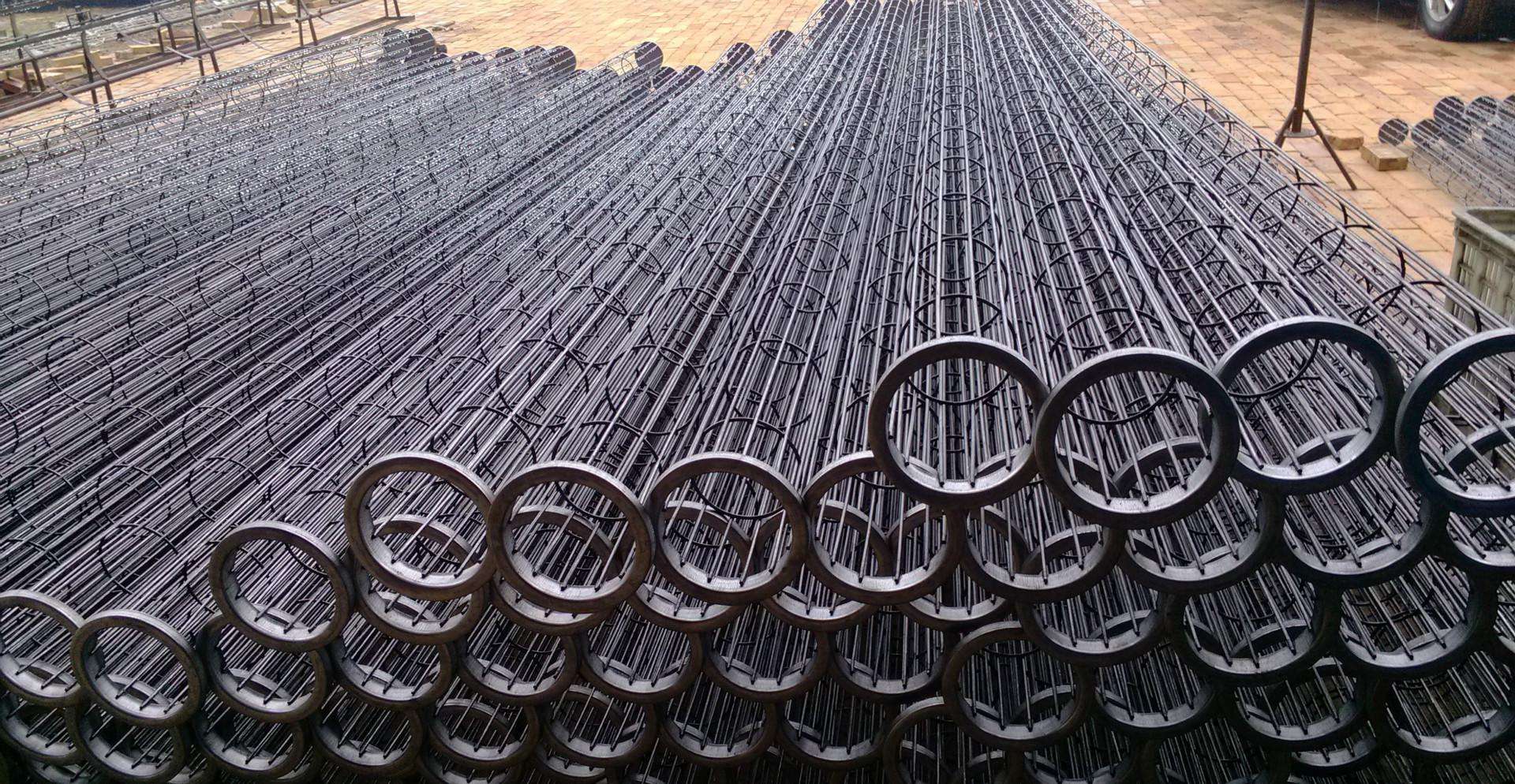 除塵骨架的技術(shù)要求: 除塵骨架應(yīng)有足夠的強(qiáng)度、剛度、垂直度和尺寸的準(zhǔn)確度,以防受壓變形,運(yùn)輸中損壞,濾袋裝入除塵器后相互接觸以及裝袋困難、袋框摩擦等情況的發(fā)生;濾袋除塵骨架表面做防腐處理,可用噴塑、涂漆或電鍍,用于高溫的防腐處理劑應(yīng)滿足高溫的要求;所有的焊點(diǎn)牢固,不允許有脫焊、虛焊和漏焊;除塵骨架與濾袋接觸的表面應(yīng)光滑,不允許有焊疤凹凸不平和毛刺。