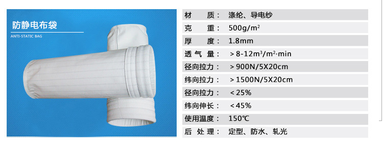 1、滌綸針刺氈濾料,可在溫度120℃以下長時間使用,具有耐酸、耐磨性好,透氣性好、除塵凈化效率高等優(yōu)點,適合過濾磨損性強的粉塵如粘土、水泥熟料、石灰石等。